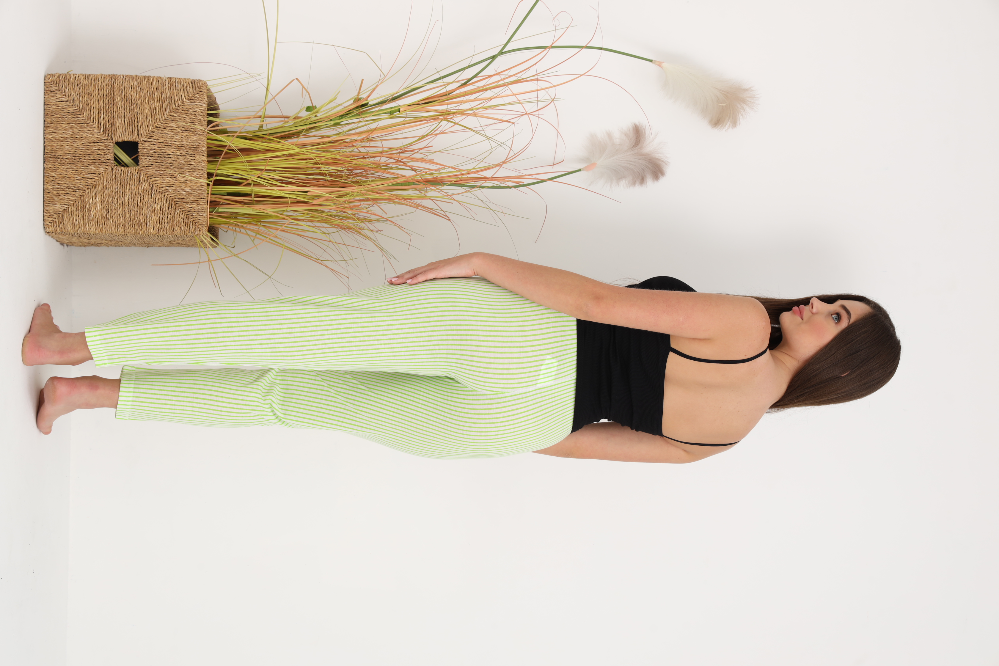 Design modern, în nuanță verde, decorat cu imprimeu delicat dungi care adaugă un aer vesel și feminin.
