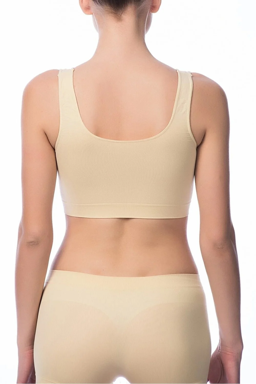 • Design dikișless (fără cusături): Fără cusături vizibile, această büstieră oferă un aspect neted și se mulează perfect pe corp, reducând riscul de iritații.