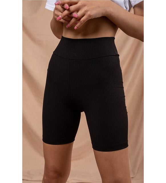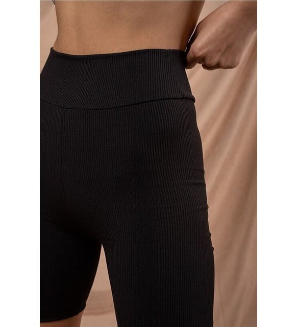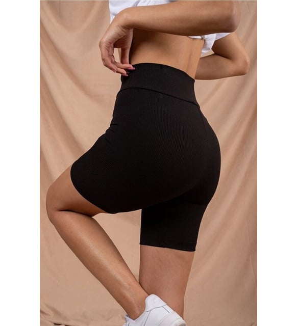 Colanți scurți pentru damă, cu talie înaltă, realizați din material elastic ce se mulează perfect pe corp. Designul simplu și culoarea neagră oferă versatilitate, fiind potriviți atât pentru activități sportive, cât și pentru ținute casual.