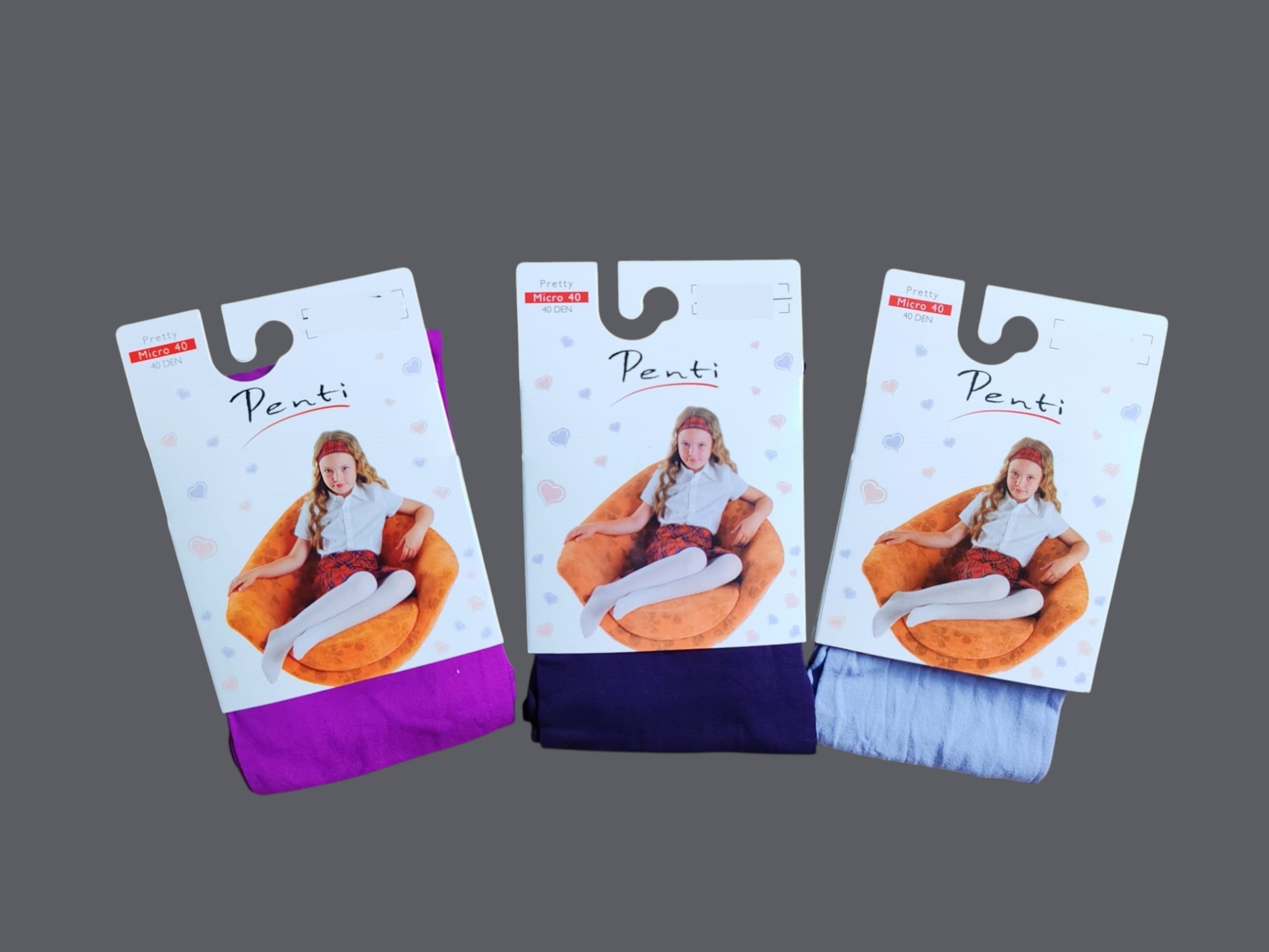 Set de 3 dresuri pentru fetițe de la Penti, model Micro 40 DEN, în culori vesele și variate. Fabricate din material moale și elastic, oferă confort zilnic și libertate de mișcare. Potrivite pentru școală, evenimente sau ținute casual. Ideal pentru sezonul de primăvară și toamnă.