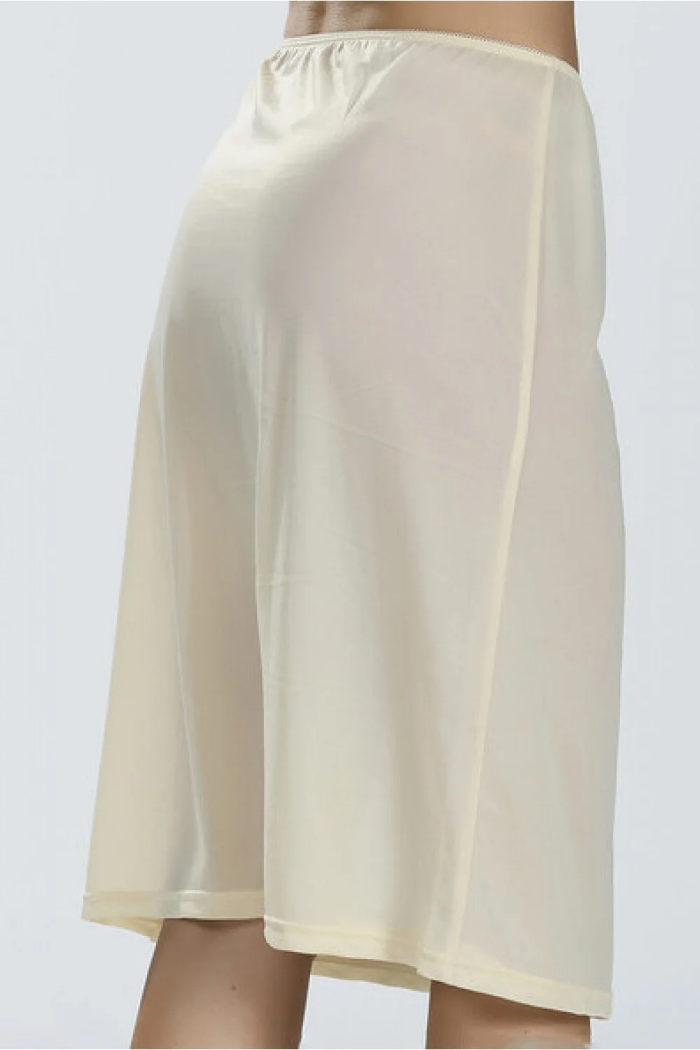 • Lungime până la genunchi: Designul său asigură o acoperire perfectă sub rochii și fuste, oferindu-ți protecție împotriva transparenței și prevenind aderarea materialului de corp.