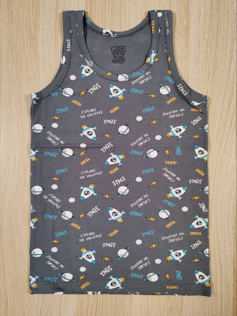 Maiou pentru băieți cu un design modern și imprimeu cool cu tematică spațială. Culoarea gri închis oferă un look versatil și ușor de asortat, iar croiala lejeră asigură confort pe tot parcursul zilei. Ideal pentru joacă, vacanță sau plimbări.