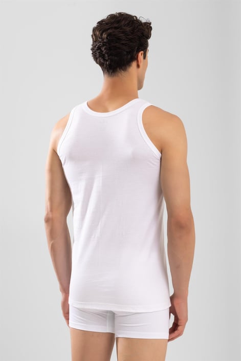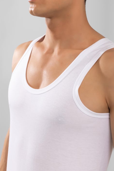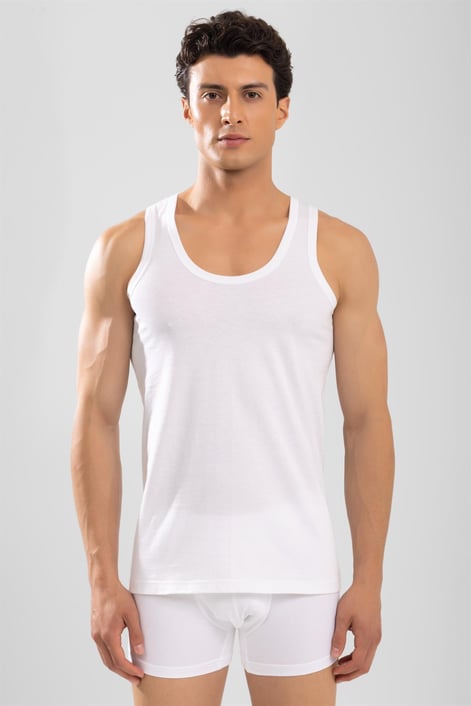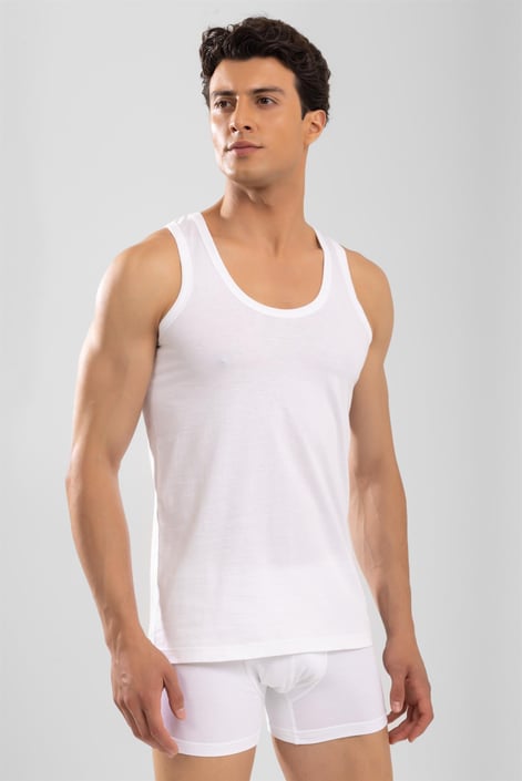 Maiou bărbătesc alb, cu design simplu și versatil, perfect pentru purtare zilnică. Textura moale și croiala lejeră oferă confort sporit și libertate de mișcare. Ideal pentru zilele călduroase, activități sportive sau ca strat de bază sub alte haine.