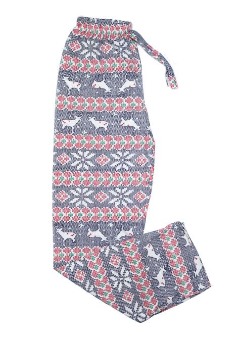 Bucură-te de magia sărbătorilor cu acești pantaloni de pijama cu tematică de Crăciun, decorati cu reni adorabili. Confecționați din 100% bumbac moale și respirabil, acești pantaloni sunt alegerea perfectă pentru serile de iarnă, oferindu-ți confortul necesar pentru o noapte liniștită de somn sau momente de relaxare acasă. Designul festiv îți va aduce spiritul Crăciunului mai aproape, făcându-i ideali pentru a te bucura de atmosfera de sărbătoare.