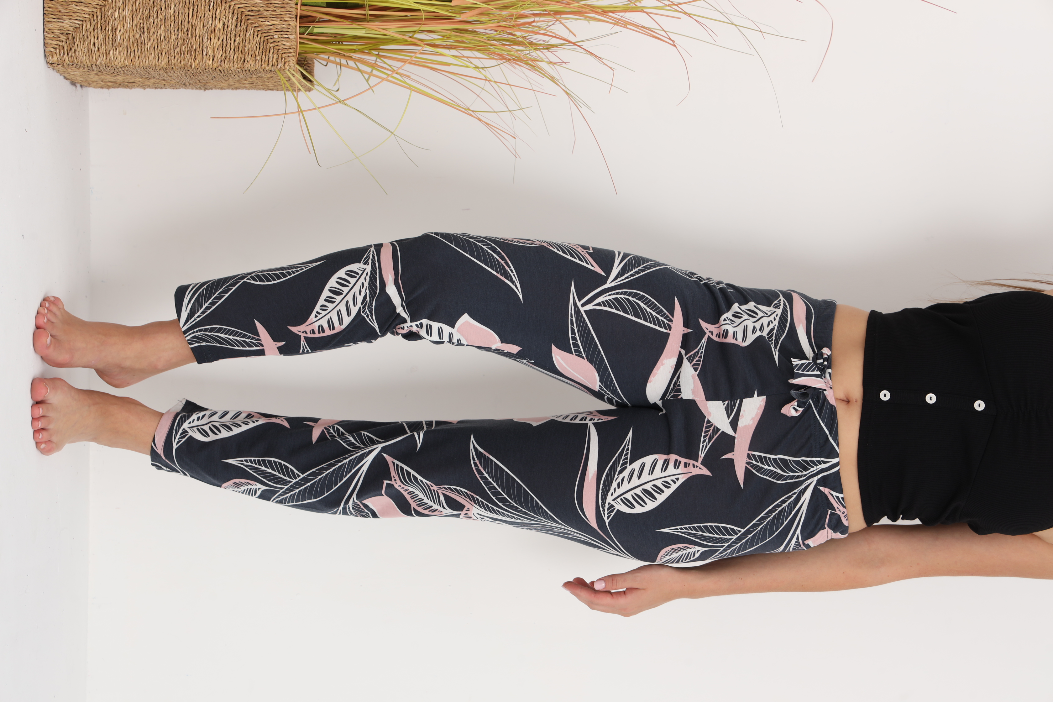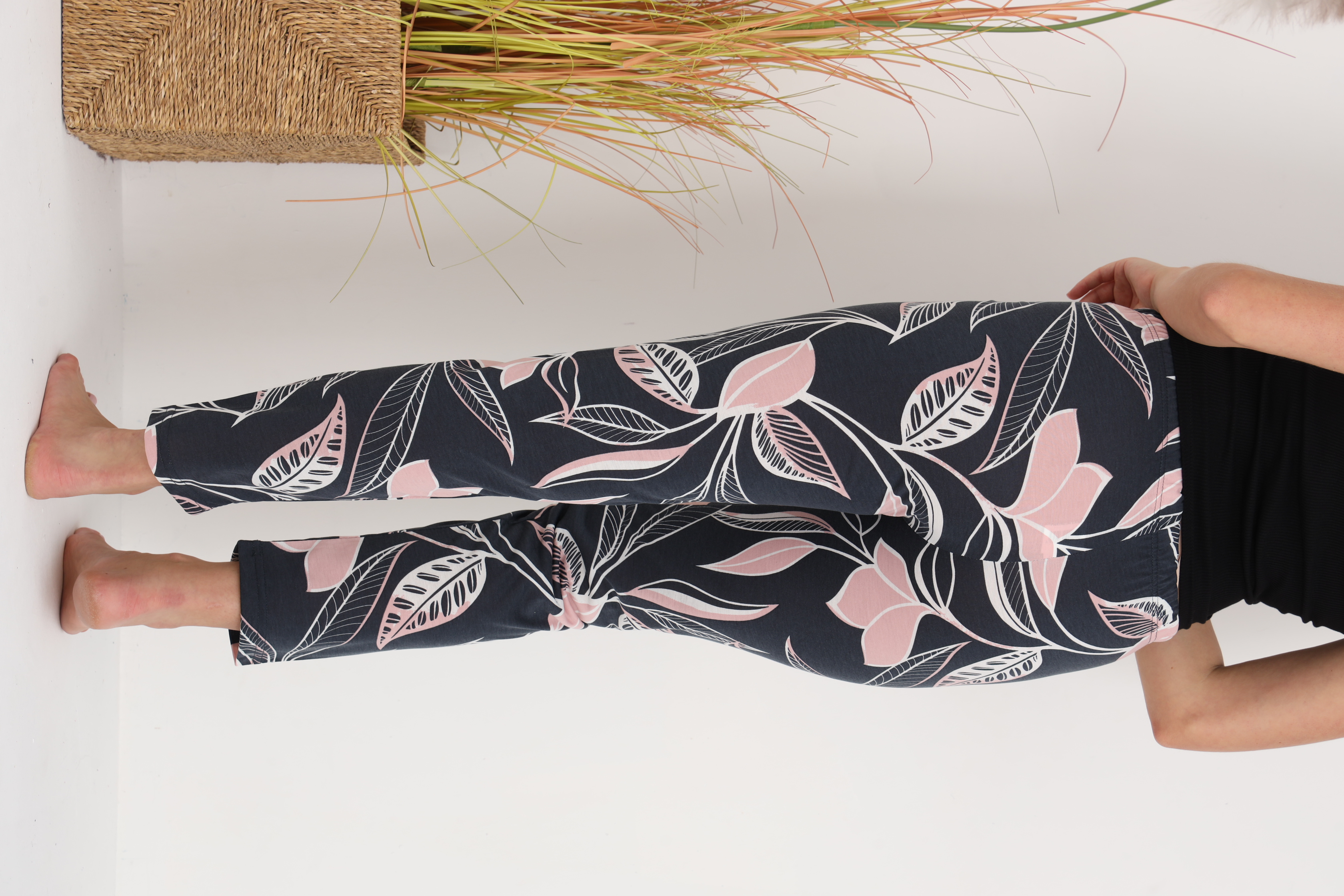 Pantaloni lungi de pijama pentru damă, confecționați dintr-un material plăcut la atingere, cu compoziție 50% bumbac și 50% poliester. Țesătura asigură confort și respirabilitate, iar în același timp rezistență și întreținere ușoară.