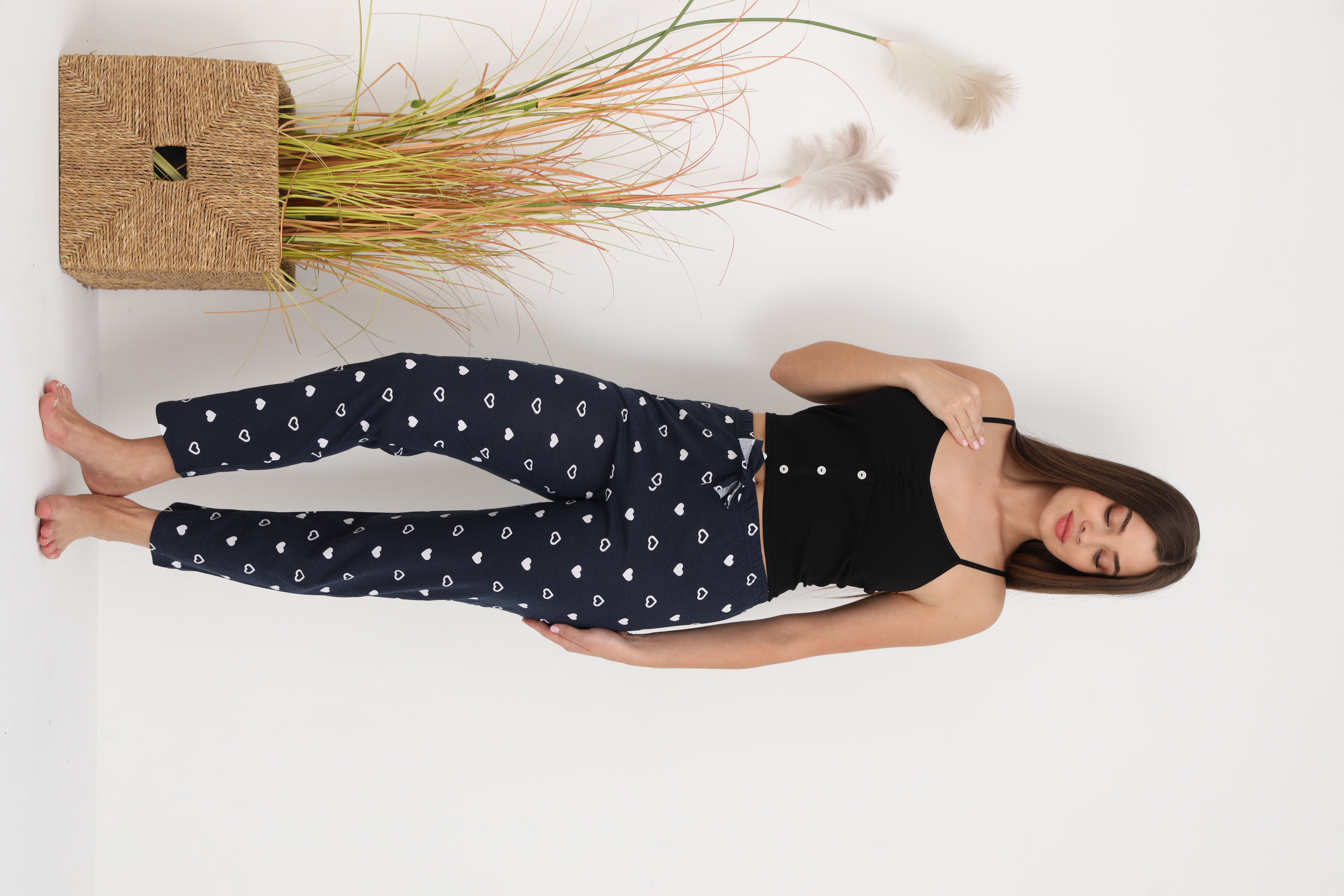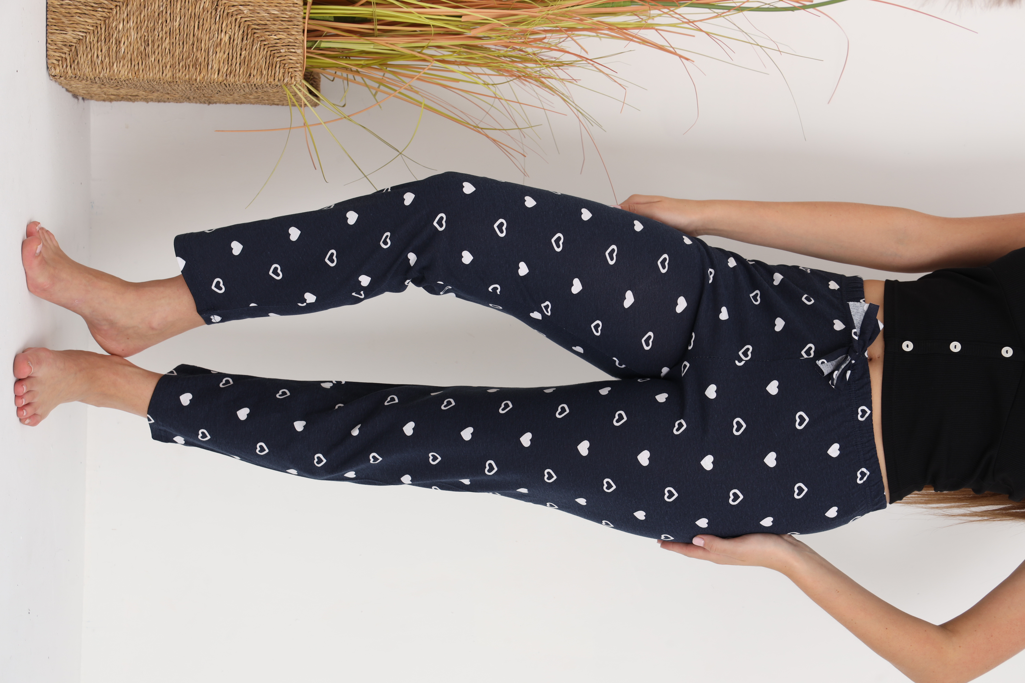 Pantaloni lungi de pijama pentru damă, confecționați dintr-un material plăcut la atingere, cu compoziție 50% bumbac și 50% poliester. Țesătura asigură confort și respirabilitate, iar în același timp rezistență și întreținere ușoară.