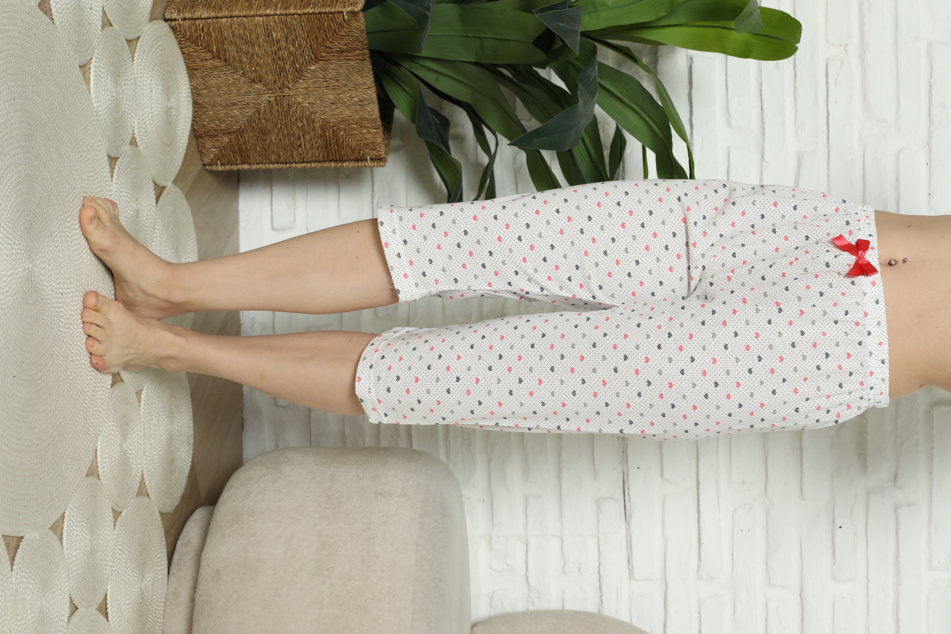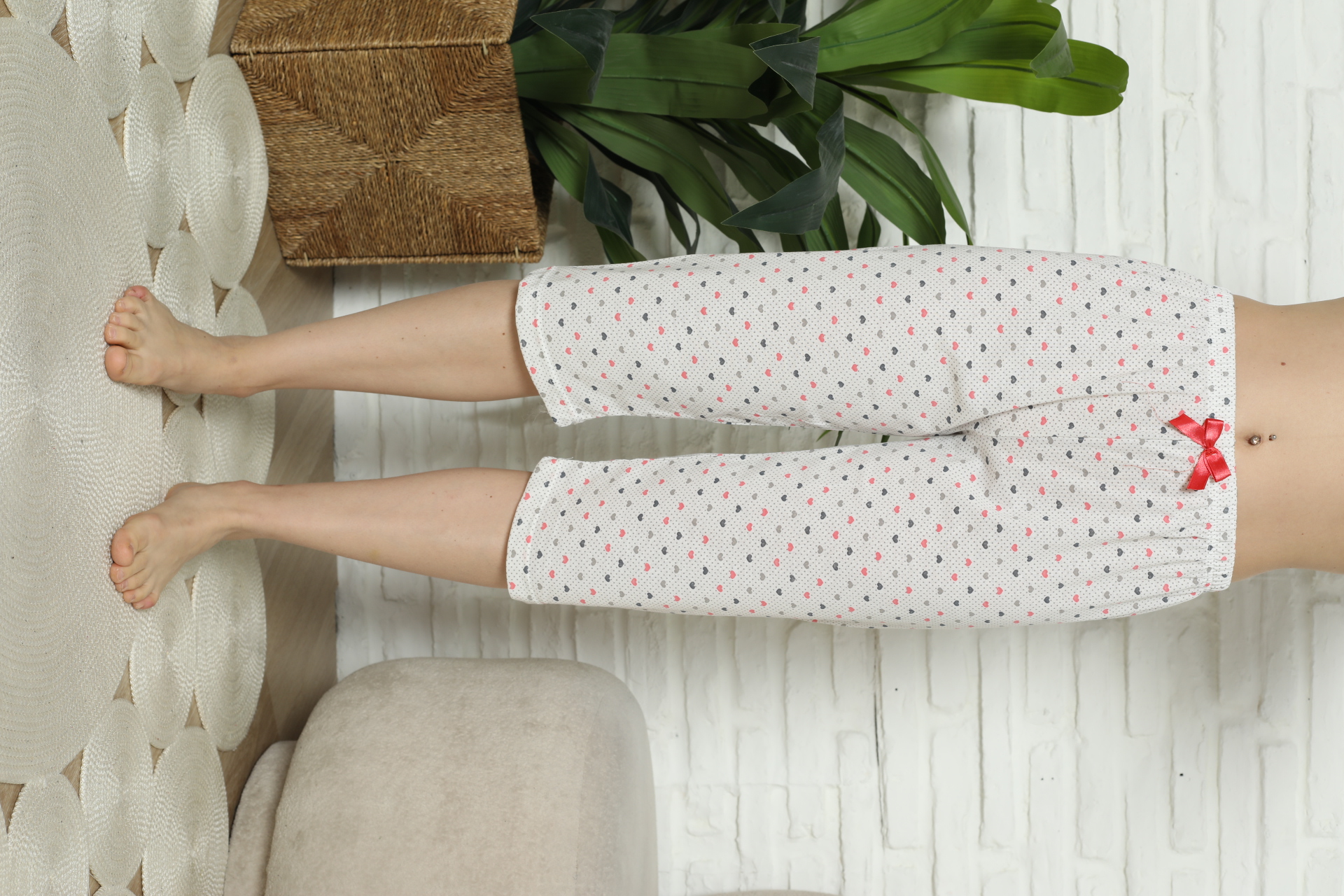 Pantaloni Pijama Damă Treisferturi, alb, inimi
