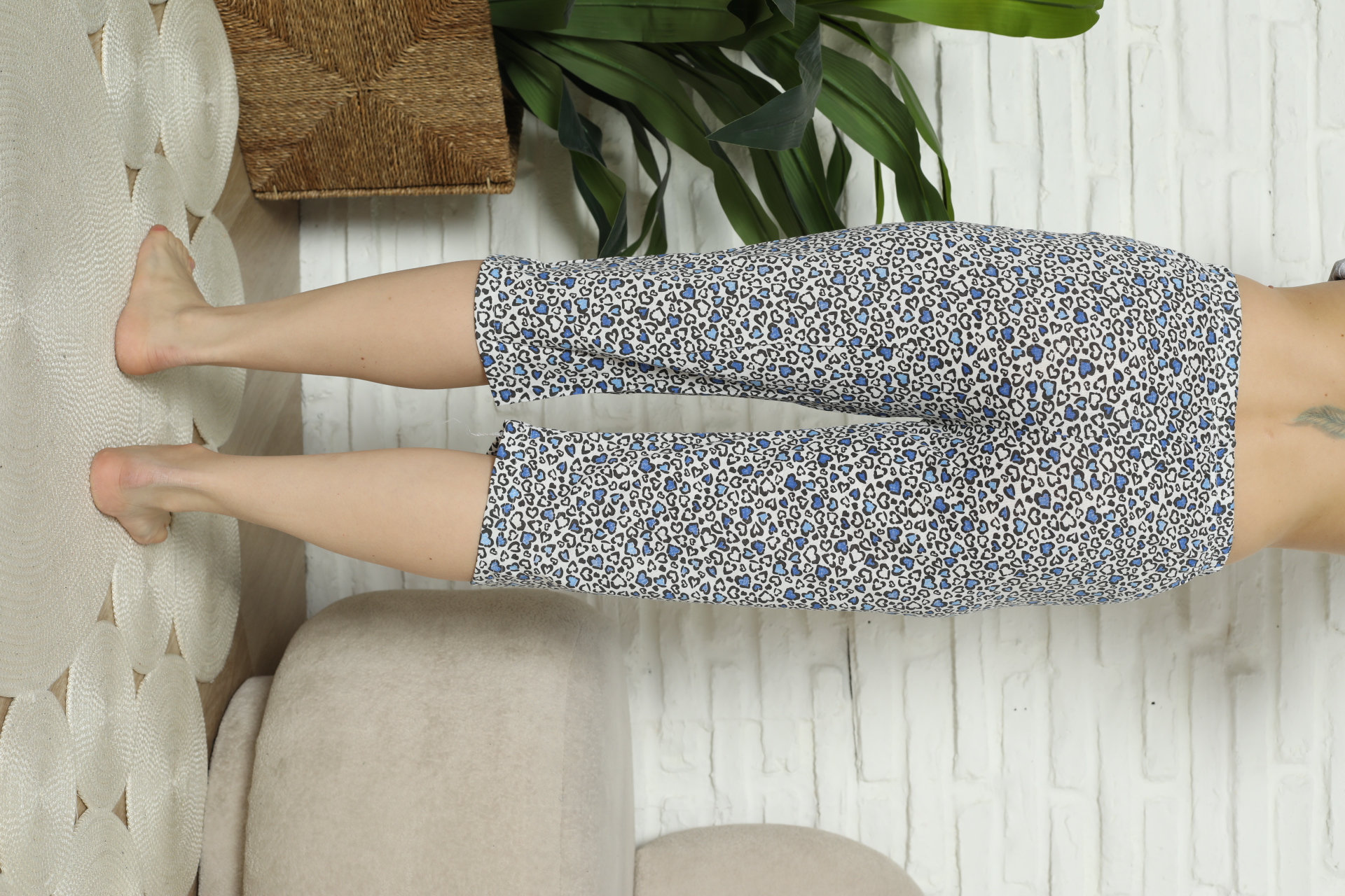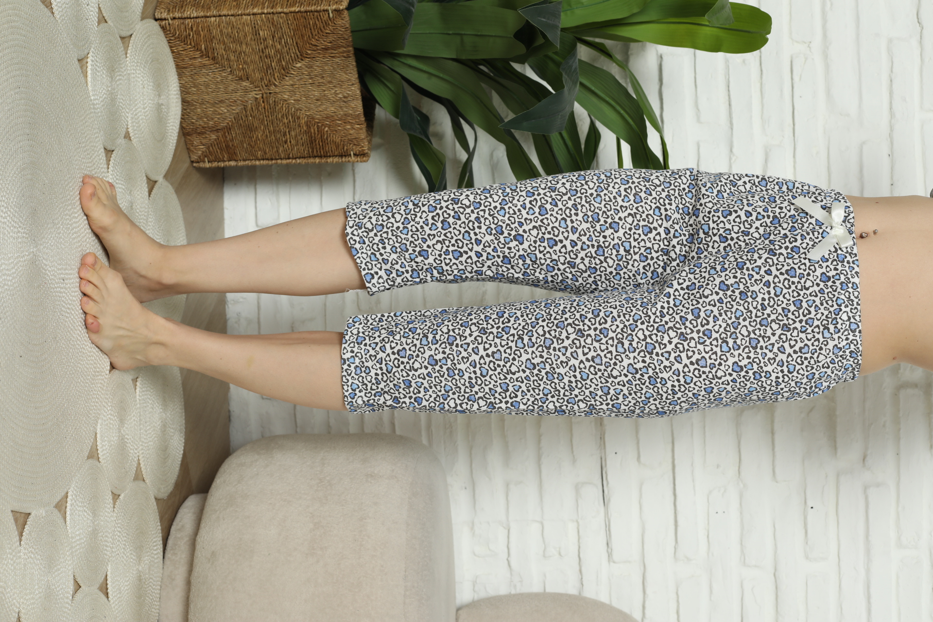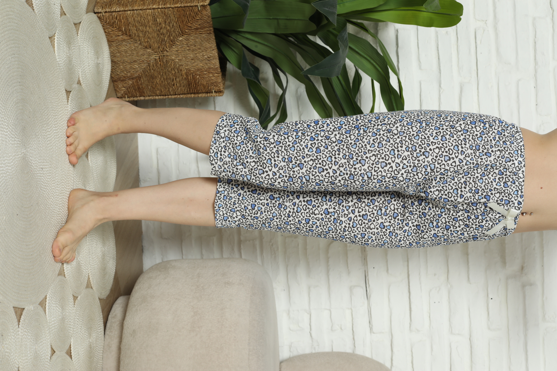 Pantaloni Pijama Damă Treisferturi, albastru, inimi