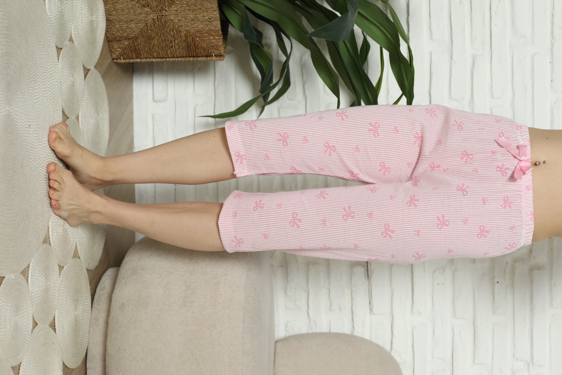 Pantaloni Pijama Damă Treisferturi, roz, fundite