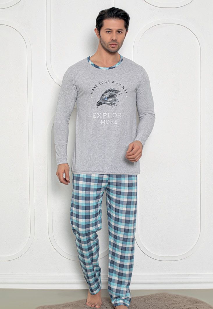 Pijama Bărbați Gri – Mâneci Lungi și Pantaloni Lungi, Design Explore More