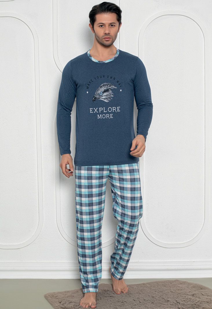 Fă-ți serile mai confortabile cu această pijama pentru bărbați albastru, perfectă pentru relaxare acasă. Designul Explore More adaugă un aer aventuros, în timp ce materialul confortabil îți va oferi o senzație plăcută pe tot parcursul nopții.