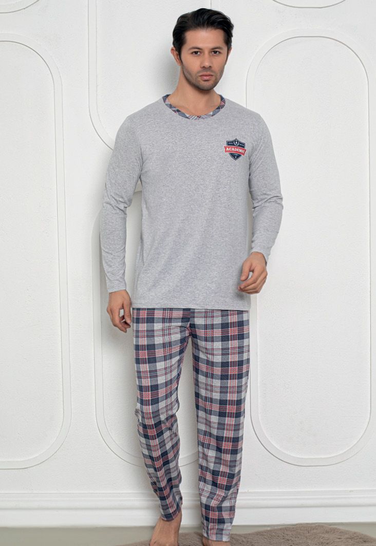 Pijama Bărbați Gri – Mâneci Lungi și Pantaloni Lungi, Design Academic