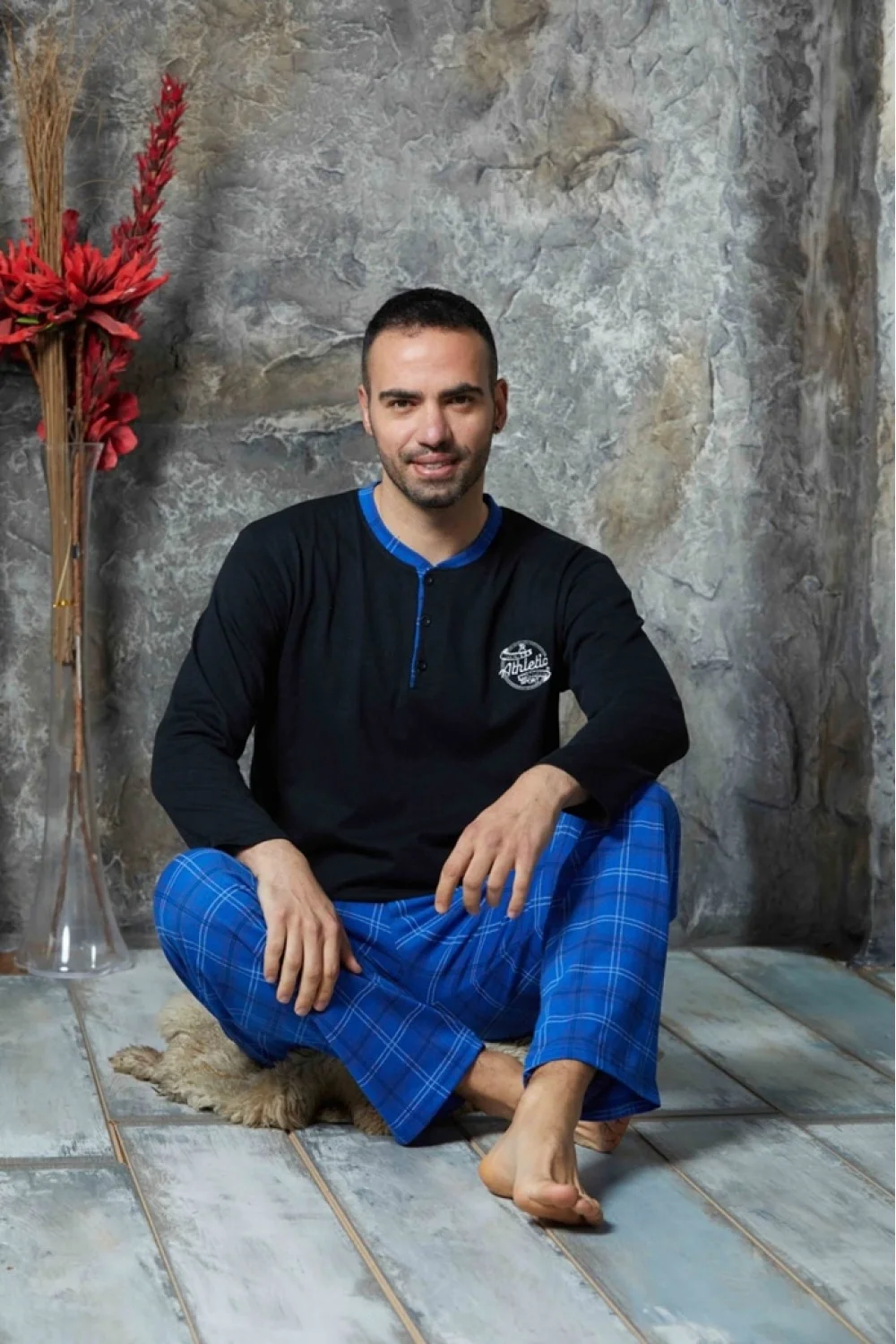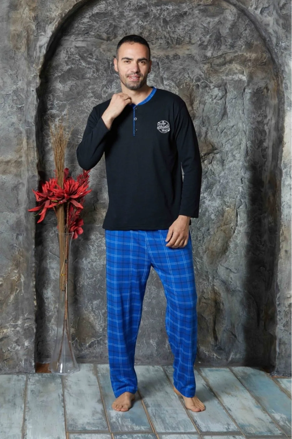Această pijamă bărbați cu mâneca lungă și pantaloni lungi în culorile negru și albastru este alegerea perfectă pentru un somn odihnitor sau momente de relaxare acasă. Confecționată dintr-un material de calitate, cu 50% bumbac și 50% poliester, pijamaua oferă un confort deosebit și o întreținere ușoară, asigurându-ți un somn liniștit pe toată durata nopții.