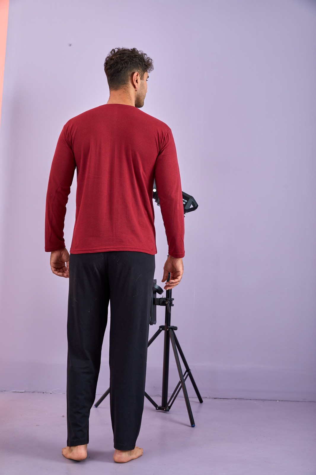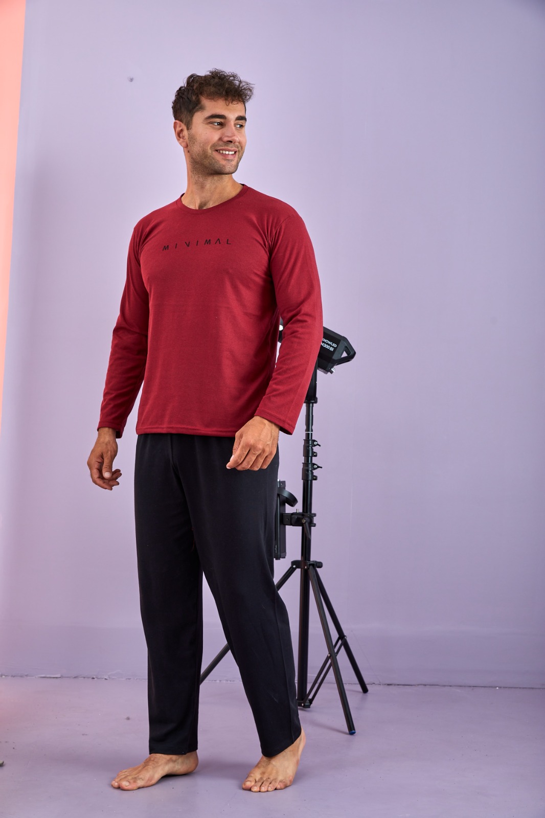 Pijama Bărbați Mâneci Lungi, Pantaloni Lungi,combină eleganța și confortul într-un design modern. Bluza bordo cu printuri subtile și pantalonii negri creează un contrast perfect, oferindu-ți atât un look rafinat, cât și o experiență plăcută de relaxare. Realizată din materiale de calitate, aceasta se potrivește ideal pentru nopțile tale de odihnă.
