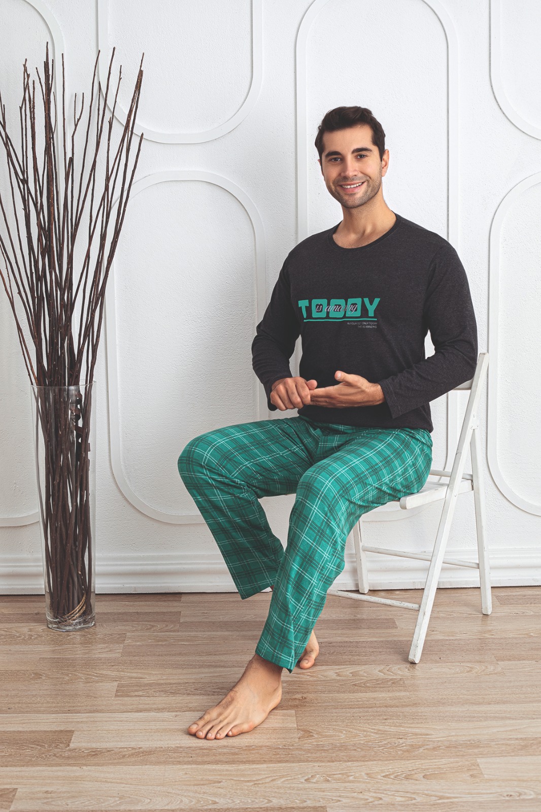 Alege pijamaua pentru bărbați Toddy, cu mânecă lungă și pantaloni lungi, într-o nuanță elegantă de gri închis. Realizată din materiale de calitate, asigură confort pe tot parcursul nopții. Perfectă pentru sezonul rece, ușor de întreținut și disponibilă în mai multe mărimi. Comandă acum pentru un somn odihnitor!