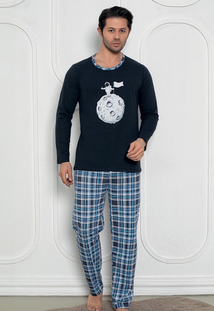 Transformă-ți fiecare seară într-o experiență confortabilă și plină de stil cu pijama noastră de bărbați cu print astronaut!