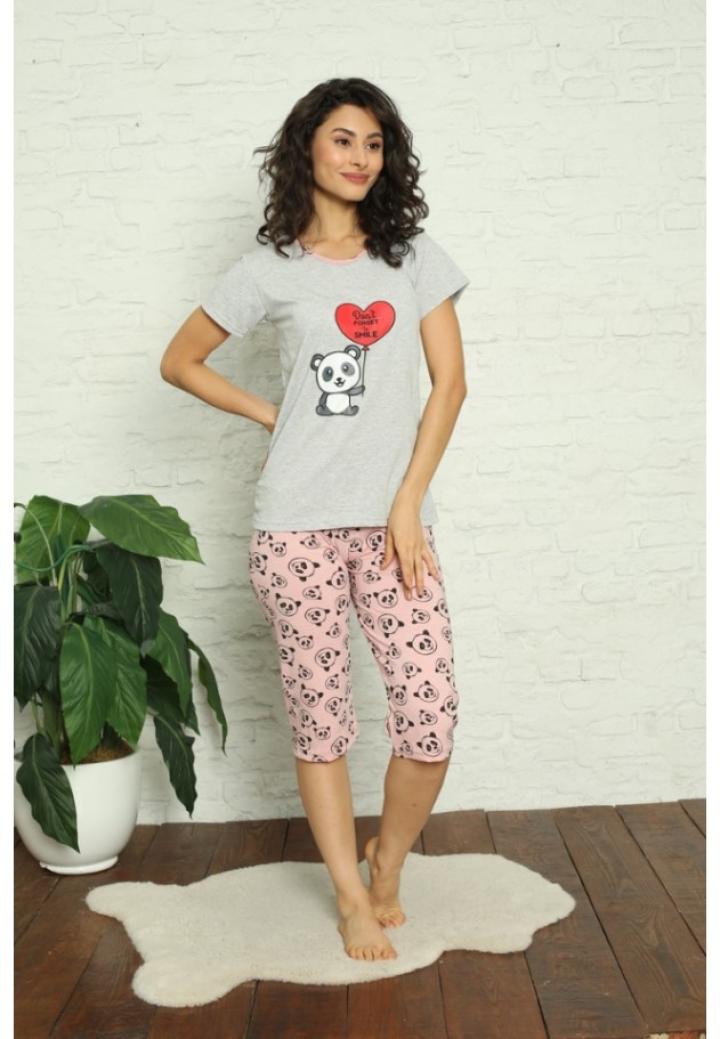 Pijama damă, mânecă scurtă, pantalon 3/4, gri, cu ursuleți, oferă confort și libertate de mișcare datorită materialului moale și respirabil. Designul jucăuș cu imprimeu ursuleți aduce un plus de veselie, iar croiala practică face această pijama perfectă pentru momentele de relaxare acasă sau somnul odihnitor.