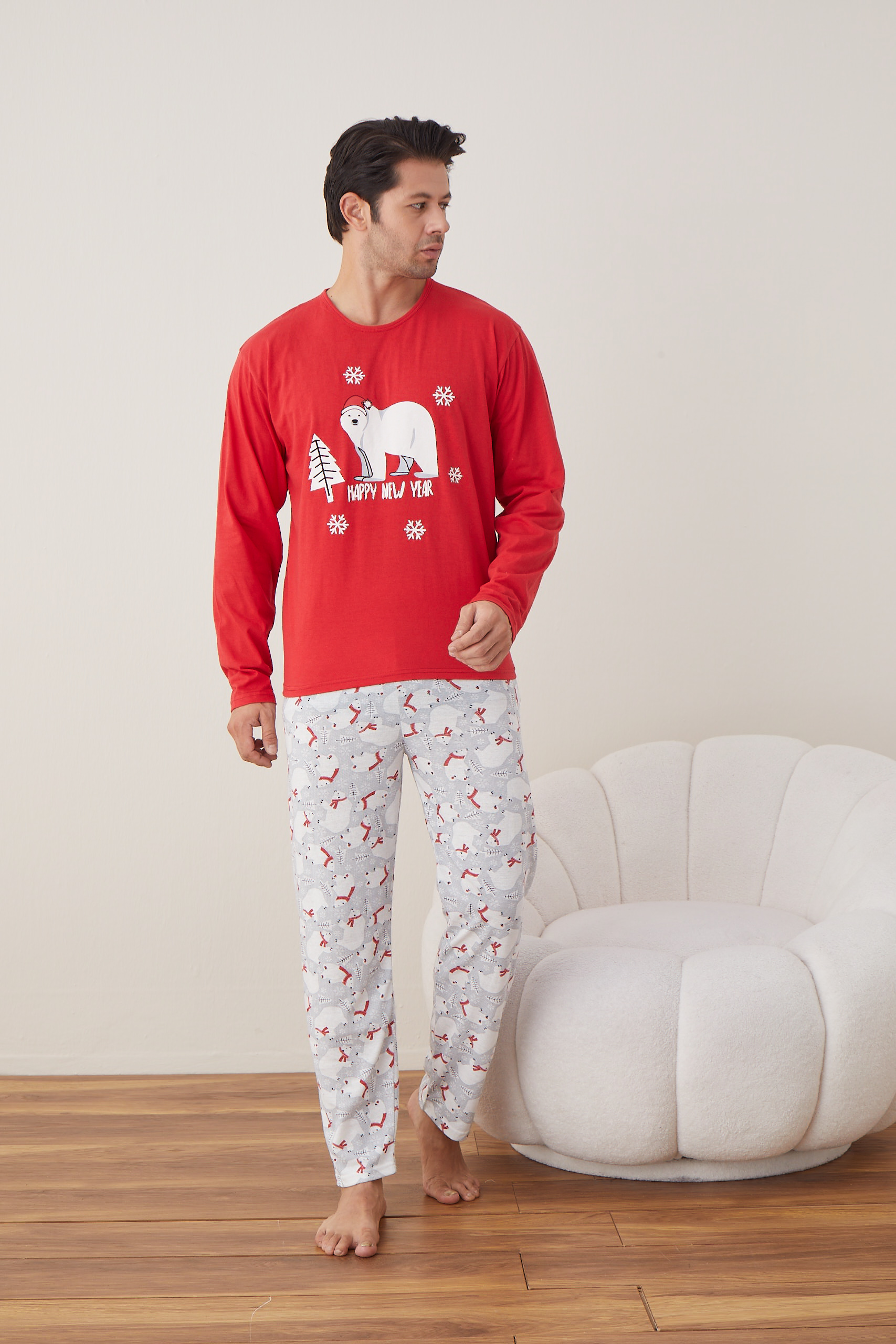 Încheie anul în stil și începe unul nou cu zâmbetul pe buze, purtând aceste pijamale festive cu imprimeu „Happy New Year”! Confortabile, călduroase și pline de spirit de sărbătoare, sunt alegerea perfectă pentru relaxarea de după mesele în familie sau petrecerea de Revelion în pijama party.