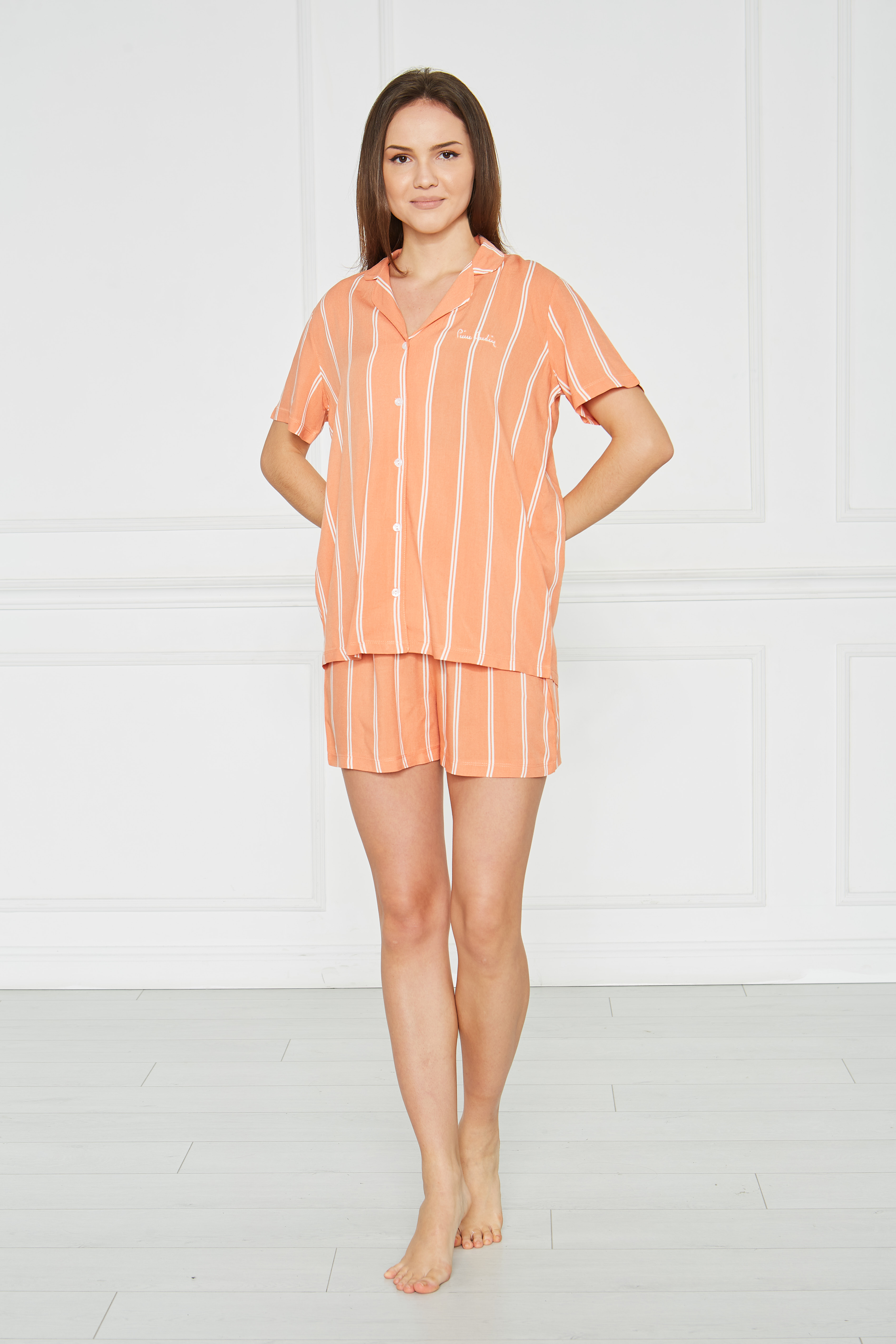 pijama dama din bumbac de la Pierre Cardin, în culoare oranj vibrantă, este perfectă pentru nopțile de vară și momentele de relaxare. Setul include o camasa cu mânecă scurtă și un short cu dungi, confecționate din material moale și respirabil. Designul cu dungi adaugă un aer modern, iar culoarea oranj aduce un plus de energie și prospețime. Bumbacul de calitate superioară asigură confortul pe toată durata zilei sau nopții, iar croiala lejeră îți permite libertate de mișcare.