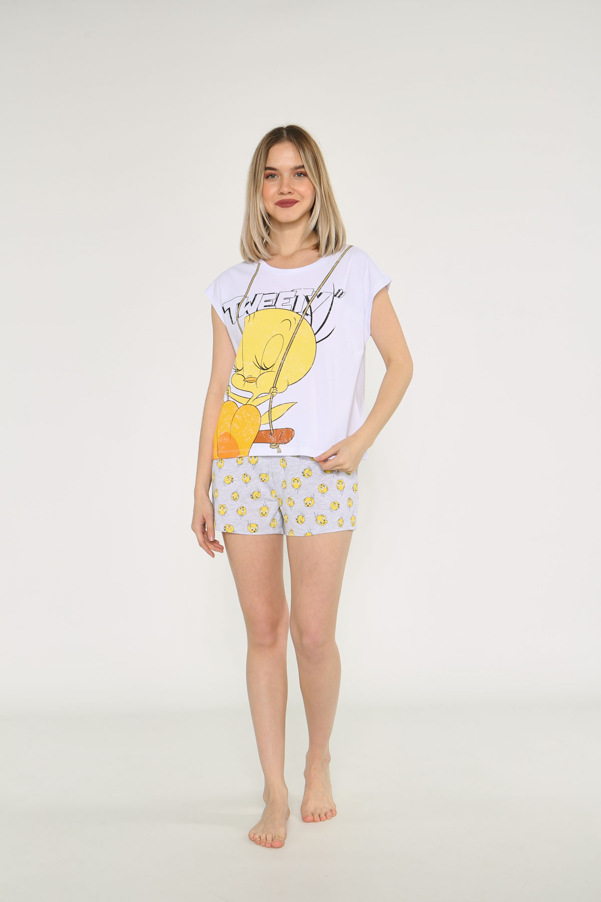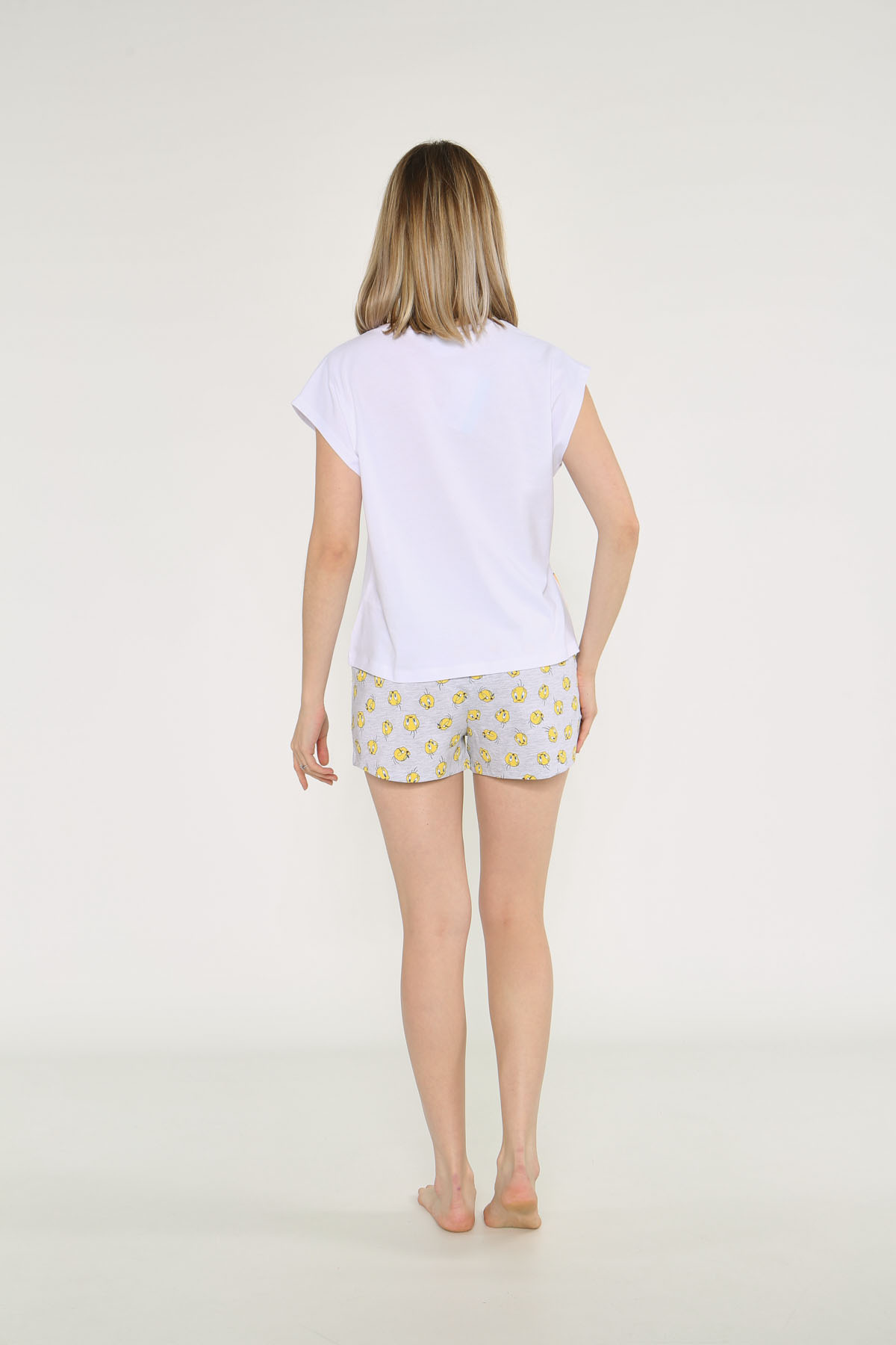 pijama dama din bumbac cu tricou și short tweet este ideală pentru momentele de relaxare acasă sau nopțile calde de vară. Setul include un tricou confortabil și un short tweet ușor, ambele realizate din bumbac de înaltă calitate, care permit pielii să respire. Designul modern și simplu face ca această pijama să fie atât practică, cât și elegantă. Perfectă pentru zilele sau nopțile leneșe, această pijama îți va oferi tot confortul de care ai nevoie.