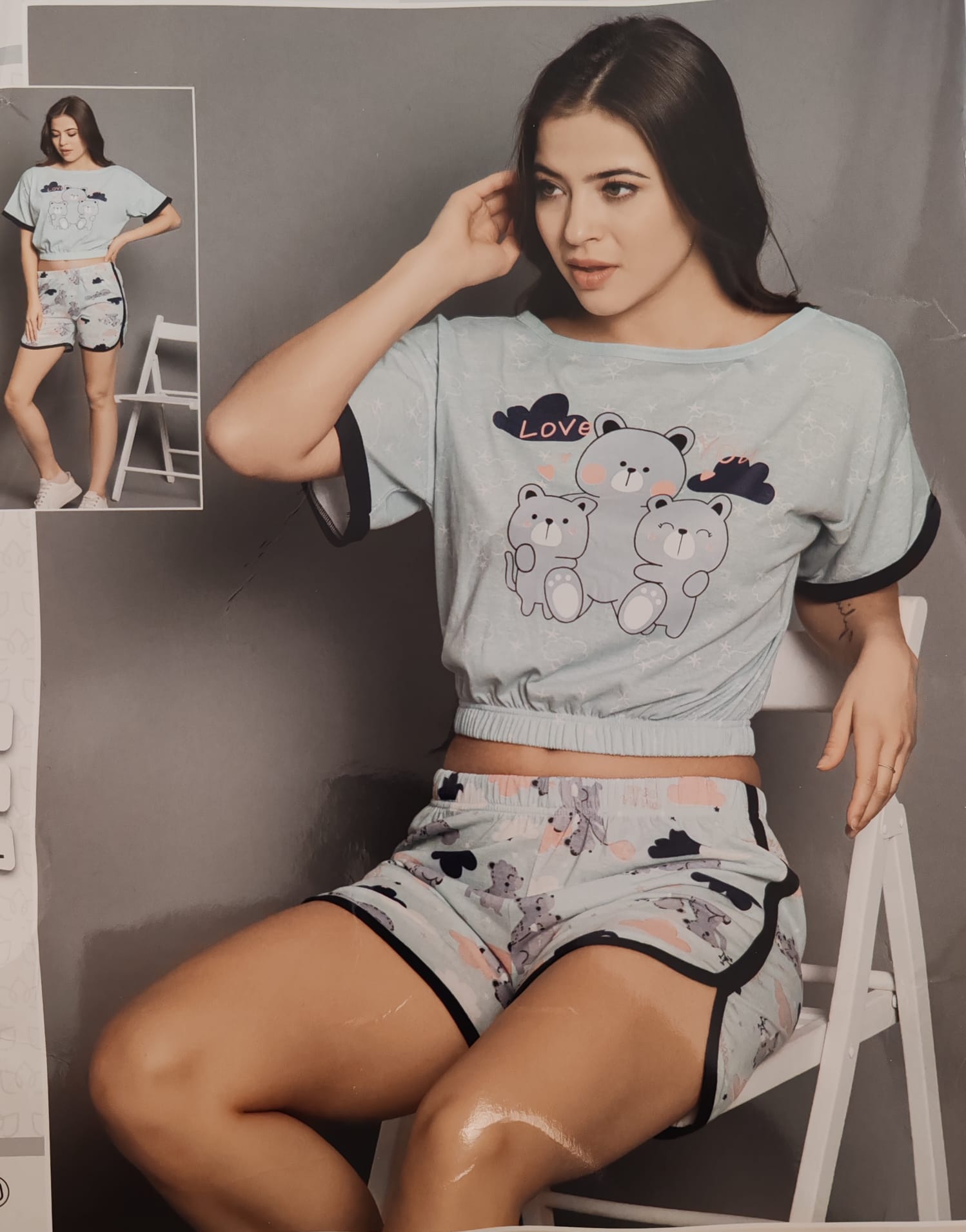 Pijama damă lejeră, cu mânecă scurtă și pantaloni scurți, perfectă pentru nopțile călduroase de vară. Imprimeul „Love You” adaugă un aer jucăuș și plin de afecțiune. Croiala relaxată și materialul moale oferă confort și libertate de mișcare în orice moment de relaxare acasă.
