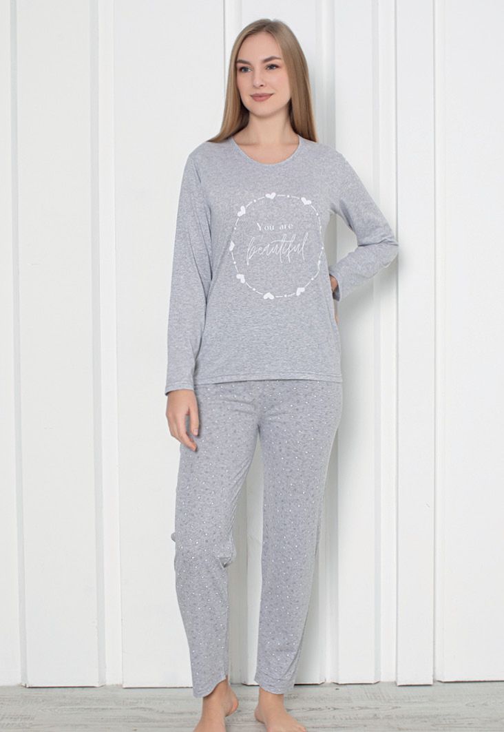 Transformă-ți serile de relaxare într-o experiență deosebită cu pijamaua Beautiful! Confecționată dintr-un amestec de 50% bumbac și 50% poliester, această pijama îți oferă un material delicat și confortabil, perfect pentru nopțile răcoroase.