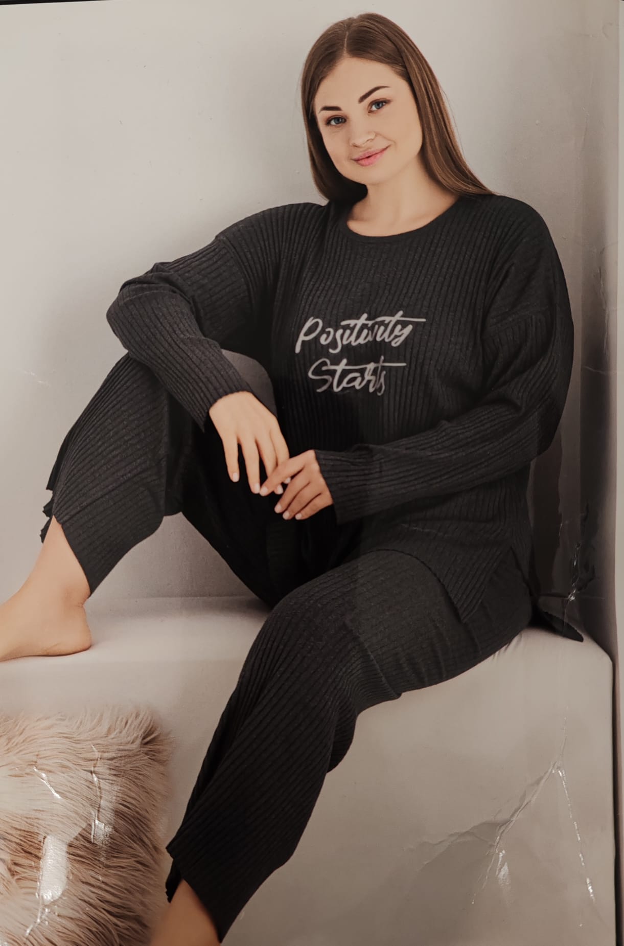 Pijama damă mărime mare plisată – culoare Gri inchis