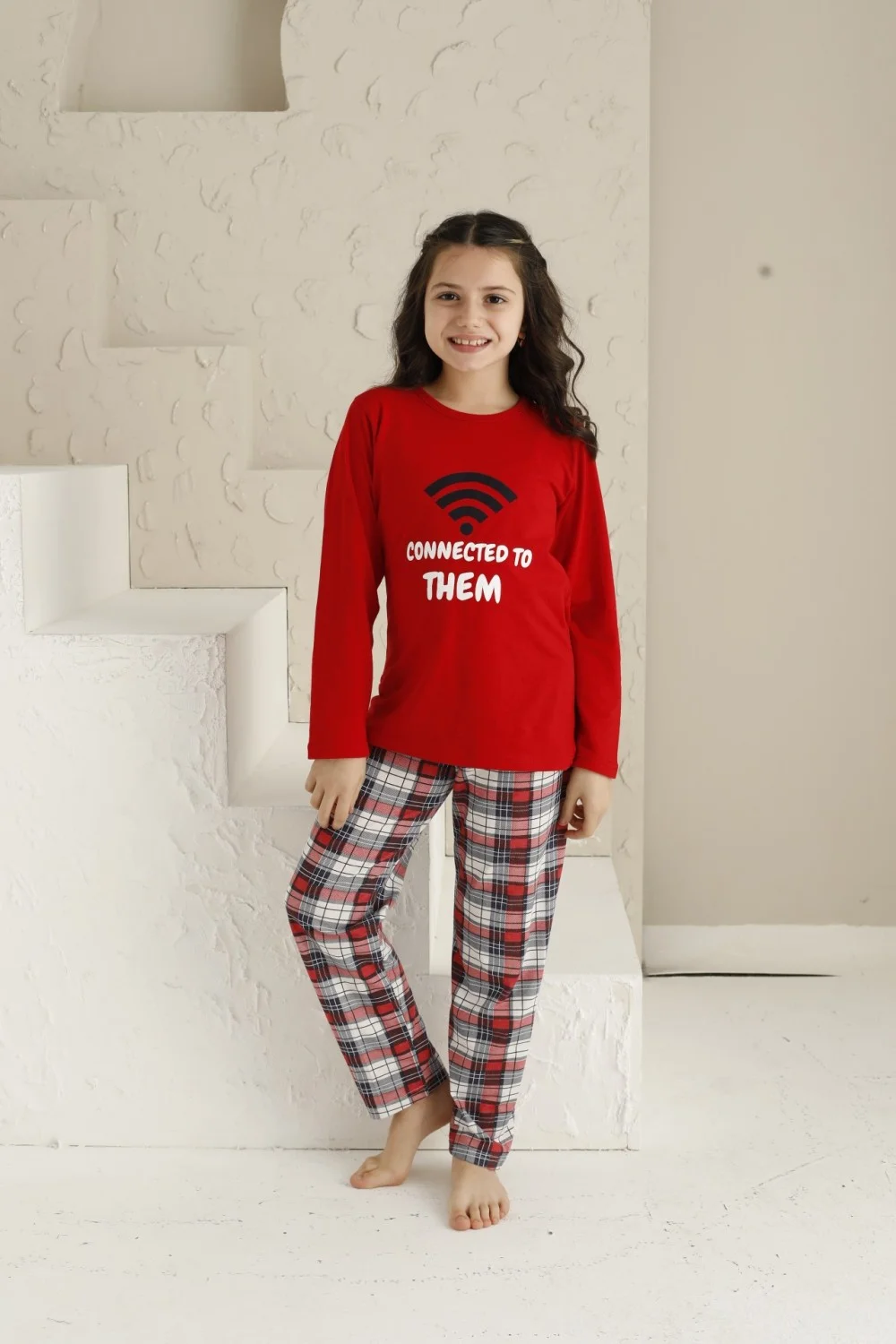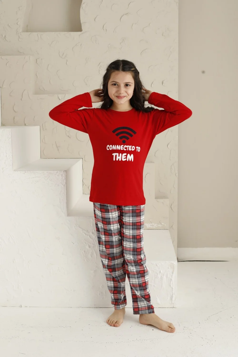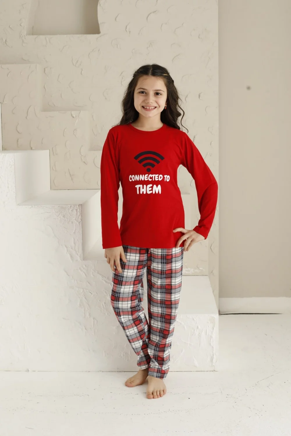Fă-i nopțile fetiței tale mai plăcute cu această pijama roșie, perfectă pentru sezonul rece. Cu mânecă lungă și pantaloni lungi, această pijama asigură căldură și confort, în timp ce imprimeul „Connected To Them” adaugă un plus de veselie și stil. Ideală pentru o noapte liniștită și plină de energie!