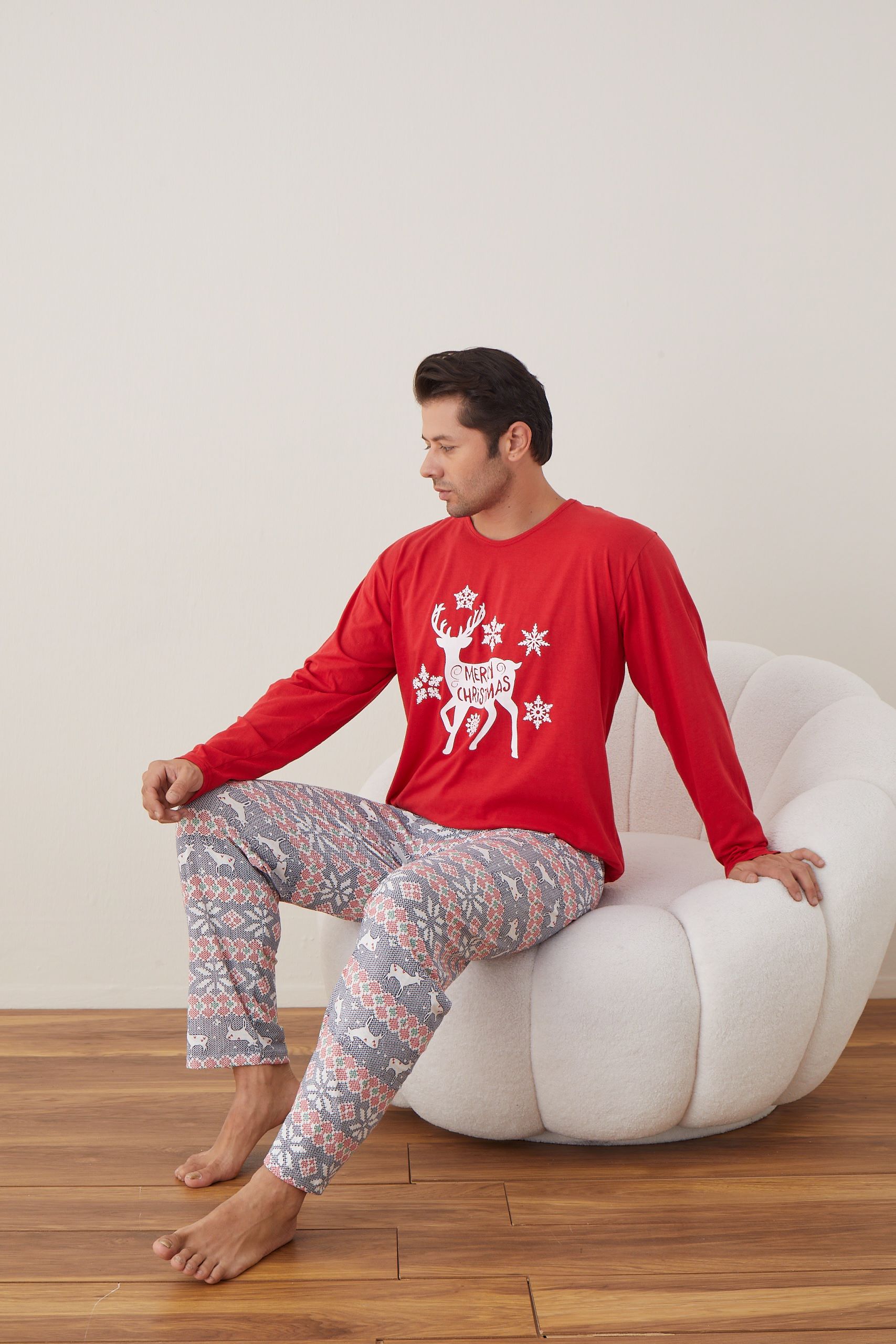 🎄 Sărbătorește Crăciunul în stil și confort cu aceste pijamale pentru bărbați cu ren roșu!