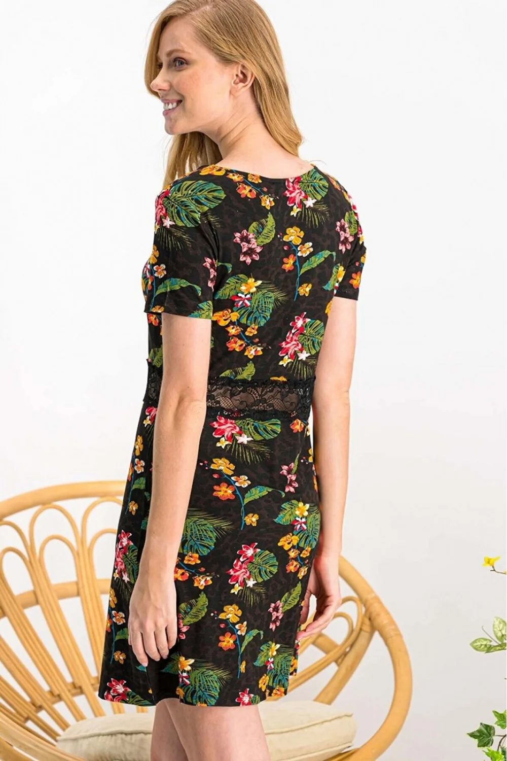 Această rochie de damă cu imprimeu floral și aplicații din dantelă adaugă un plus de eleganță și rafinament oricărei ținute. Imprimeul floral vibrant aduce un aer proaspăt și feminin, în timp ce detaliile din dantelă fină adaugă o notă de sofisticare și delicatețe. Croiala lejeră și materialul ușor și confortabil fac din această rochie alegerea ideală pentru orice ocazie specială, fie că este vorba de o petrecere, o ieșire în oraș sau o zi de vară.
