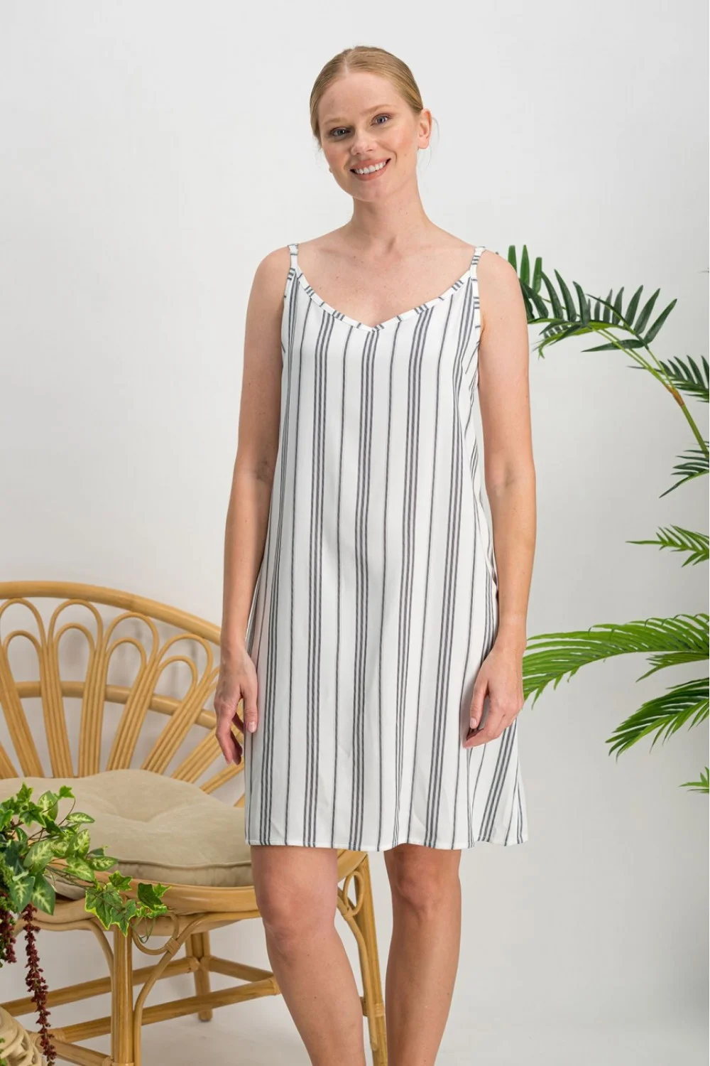 Această rochie scurtă cu bretele subțiri și imprimeu dungi alb/negru este alegerea perfectă pentru un look elegant și confortabil în orice zi caldă. Confecționată din 48% bumbac, 48% modal și 4% elastan, rochia oferă o textură plăcută la atingere și o potrivire perfectă datorită elasticității sale. Imprimeul cu dungi alb/negru adaugă un stil modern și versatil, care poate fi purtat atât la evenimente casual, cât și în timpul unei plimbări relaxante. Bretelele subțiri subliniază o siluetă feminină, iar croiala scurtă o face ideală pentru sezonul cald.