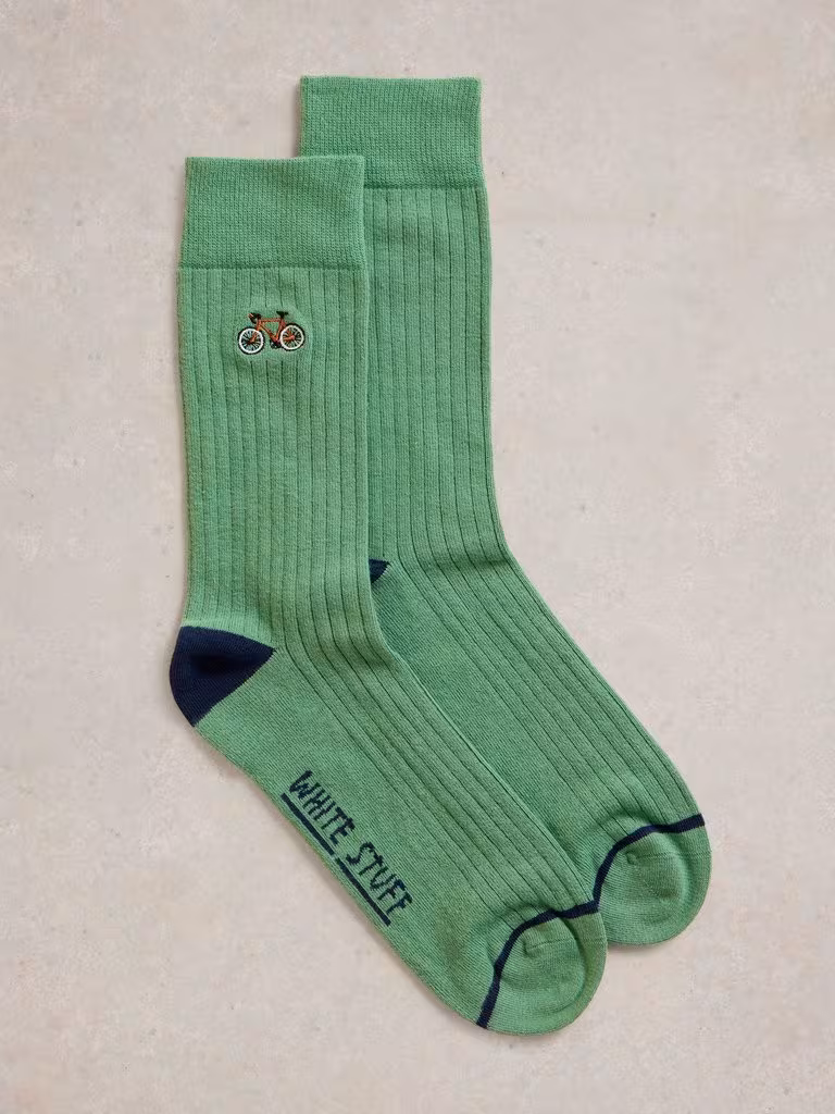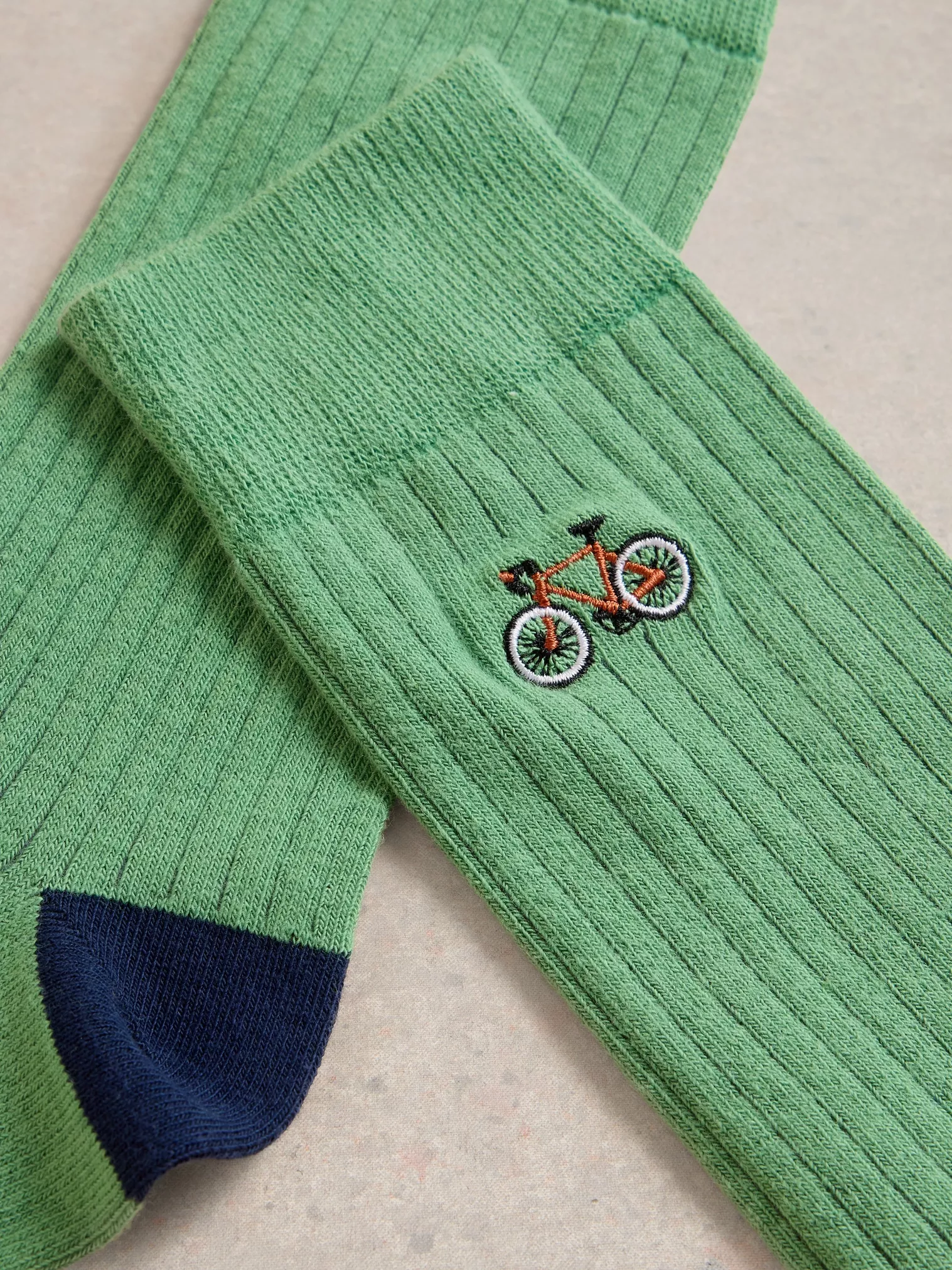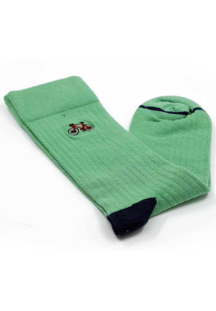 Șosete Bărbați Bumbac Organic – Model cu Bicicletă, Fără Cusătură, Verde