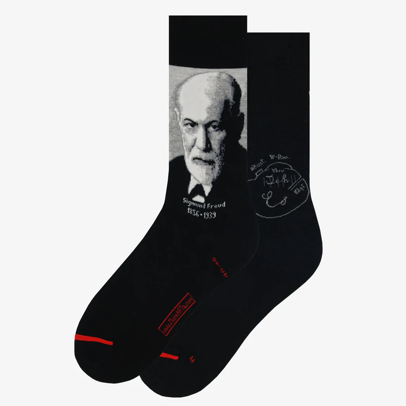 Designul cu tematică Sigmund Freud adaugă un element de originalitate și intelect în garderoba bărbaților care sunt pasionați de psihologie. Aceste șosete sunt ideale pentru a exprima admirația față de un geniu al științei, dar și pentru a adăuga un strop de stil personal ținutelor tale.