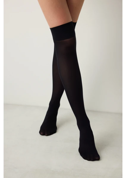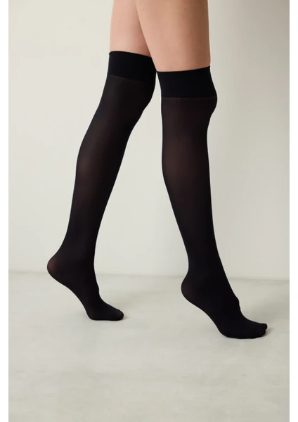 Șosete Penti Micro 40 DEN, peste genunchi, cu grosime medie și finisaj mat. Oferă un look elegant și modern, fiind confortabile pentru purtare zilnică. Culoarea neagră clasică le face ușor de asortat cu orice ținută.