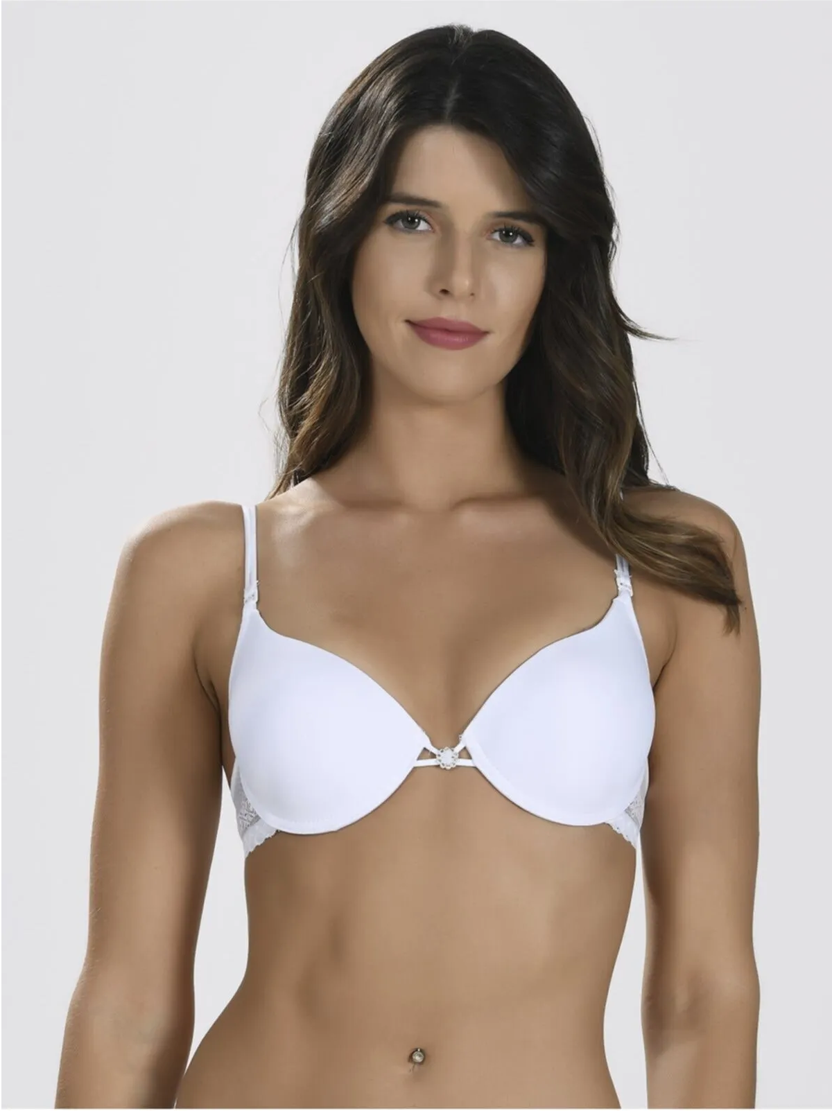 Sutienul push-up cu spatele din dantelă fină combină eleganța cu funcționalitatea pentru un plus de confort și susținere. Realizat din materiale de calitate, oferă un efect de ridicare naturală și conturare a decolteului, evidențiind frumusețea siluetei.