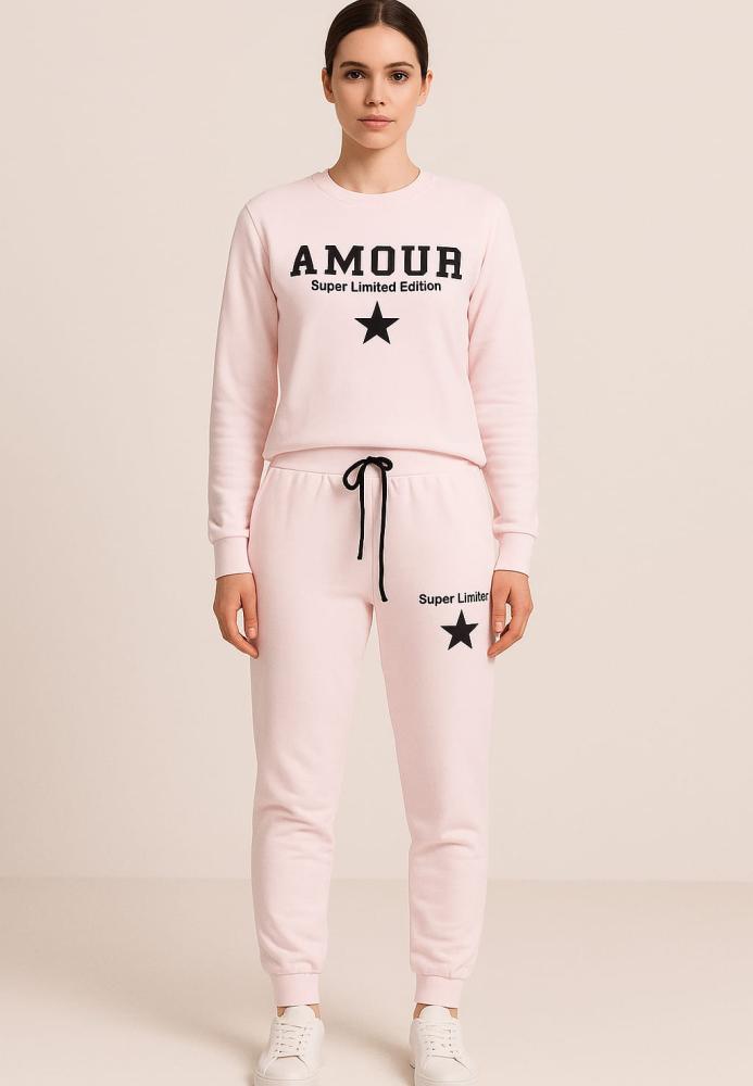 Trening Bumbac Damă Roz – Cu Manșete și Scris Amour